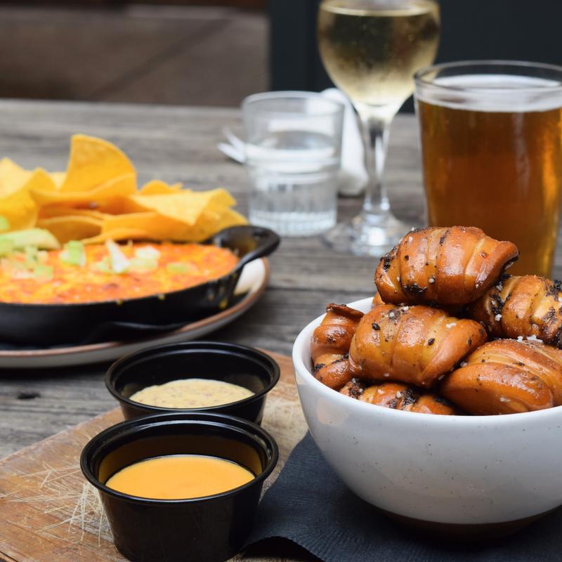 The pretzels are unlike any pretzel in a restaurant. They are crunchy and soft with a different type of salt. The beer cheese was good as well. The hamburger was a $6 special and worth every bit. Even the fries were perfect... everything was unique and delicious that we tried.
